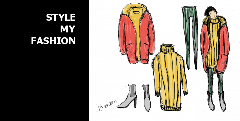 Dicke Strickstrumpfhosen passen bestens zu dem robusten Pulloverkleid. Auch hier ist Mut zur Farbe gefragt. Ich kombiniere die satten GELB- und ROTTÖNE mit einem kräftigen FLASCHENGRÜN an den Beinen. Cool und sexy wird der Look mit einer spitzen Stiefelette aus feinem Nappaleder mit hohem, geraden Absatz. Für viele andere Gelegenheiten, ob der lange Shoppingtrip, der Spaziergang mit dem Hund oder für Schule oder Uni kann man den Look durch sportlichere Schuhe ergänzen. Freche Schnürstiefel wie Doc Martens oder ein Biker Boot mit Nieten machen das Outfit jung und cool.