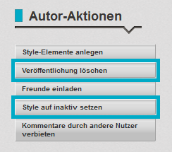 - Wenn Du Deinen Style auf "inaktiv" setzt, kann kein Nutzer mehr einen neuen Zugang zur Bonus- oder Premiumansicht für den Style erlangen. Zudem erscheint der Style nicht mehr in der Style-Suche oder in Style-Listen (z.B. auf der Startseite). Er ist jedoch weiterhin in Deinem Profil als ein Style von Dir aufgelistet und andere Nutzer können ihn sehen, wenn er z.B. in Ihrer Fanliste ist oder wenn sie bereits die Premiumansichten freigeschaltet haben.